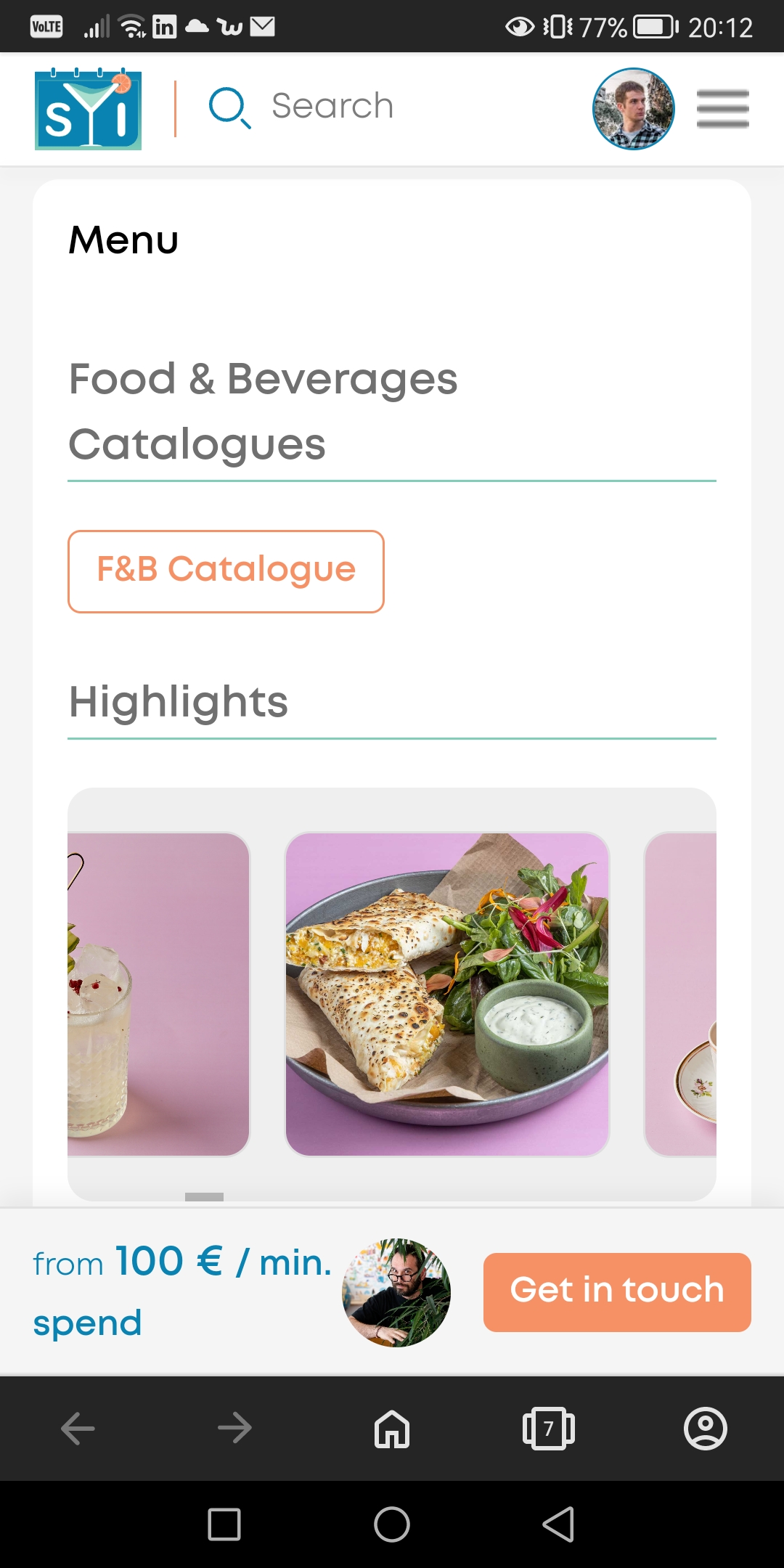 This section can only be seen in those Spaces that a menu has been provided to us by the Venue. When there is one, then, the section has the following appearance: